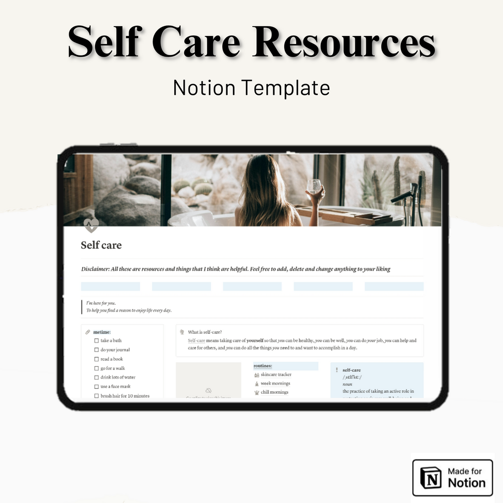 Care & Calm self care Notion Template