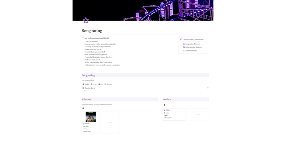Purple Notion Music and Songranking Template